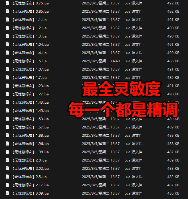 3.【独家】游戏灵敏度0.7-3全部都有,对应24个灵敏度一共24份lua文件付款全发(看下面图片)
